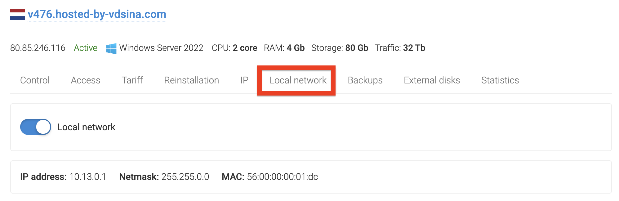 Within the framework of the location, it is possible to organize a local network between servers, for this the "Local network" option is available in the server settings.